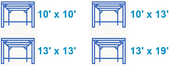 Sizes: 10'x10', 10'x13', 13'x13' and 13'x19'